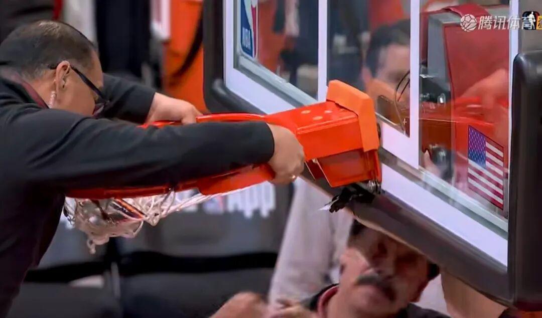卡斯尔热身时,干脆把火箭的篮筐都扣歪了